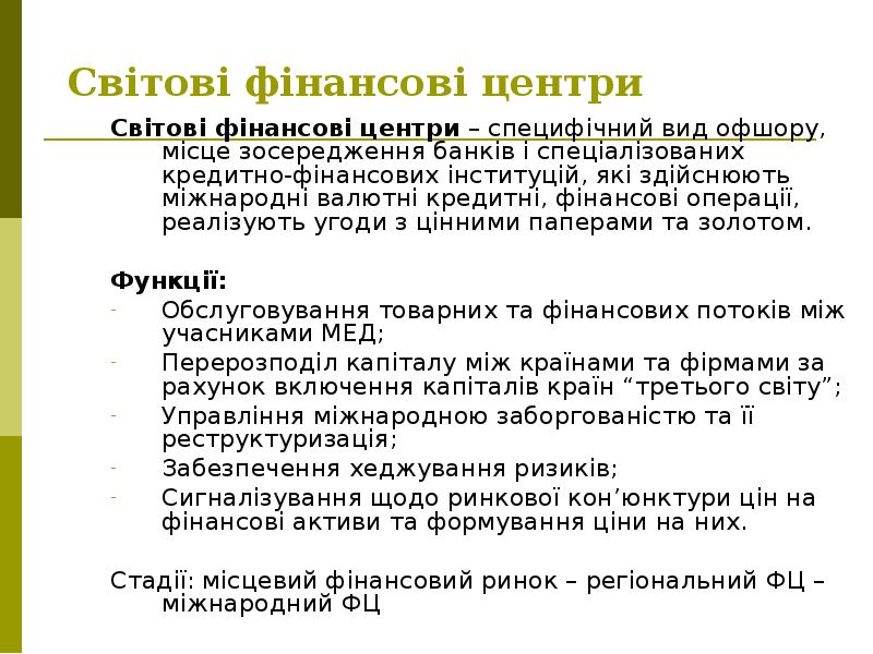- 41. Диверсифікація діяльності у світових фінансових центрах, зростання світових фінансових центрів у