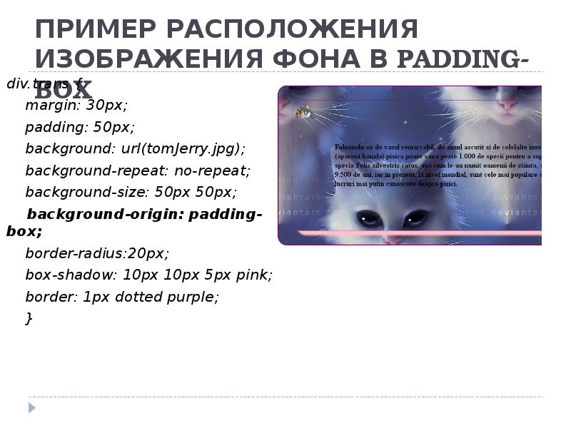 - 15. ПРИМЕР РАСПОЛОЖЕНИЯ ИЗОБРАЖЕНИЯ ФОНА В PADDING-BOX div.trans { margin: 30px;