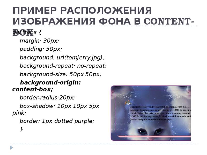 - 16. ПРИМЕР РАСПОЛОЖЕНИЯ ИЗОБРАЖЕНИЯ ФОНА В CONTENT-BOX div.trans { margin: 30px;