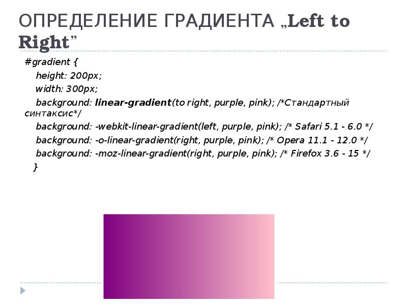 - 22. ОПРЕДЕЛЕНИЕ ГРАДИЕНТА „Left to Right” #gradient { height: 200px;