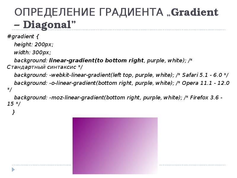 - 23. ОПРЕДЕЛЕНИЕ ГРАДИЕНТА „Gradient – Diagonal” #gradient { height: 200px;