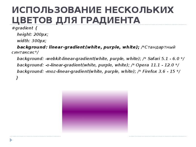 - 24. ИСПОЛЬЗОВАНИЕ НЕСКОЛЬКИХ ЦВЕТОВ ДЛЯ ГРАДИЕНТА #gradient { height: 200px;