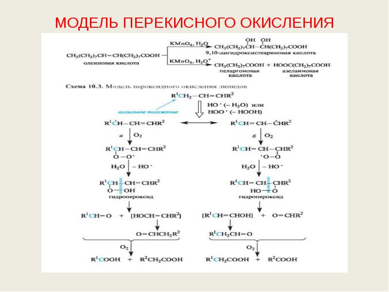 - 38. Реакция окисления Первичными продуктами взаимодействия липидов с молекулярным кислородом являются гидропероксиды,