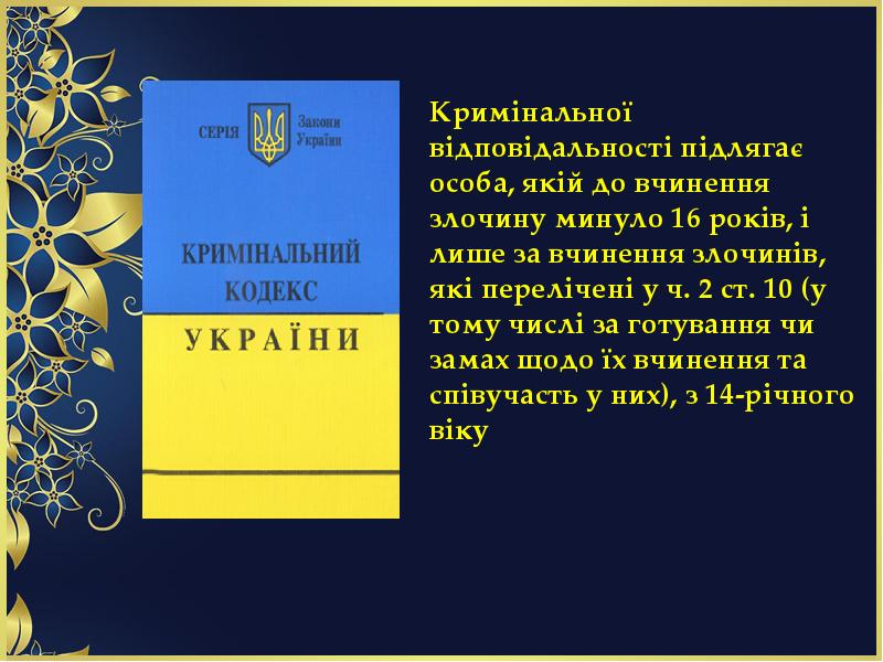 Скачать презентацию на тему Виховна година. Тема: «Правопорушення та відповідальність неповнолітніх» можно ниже: