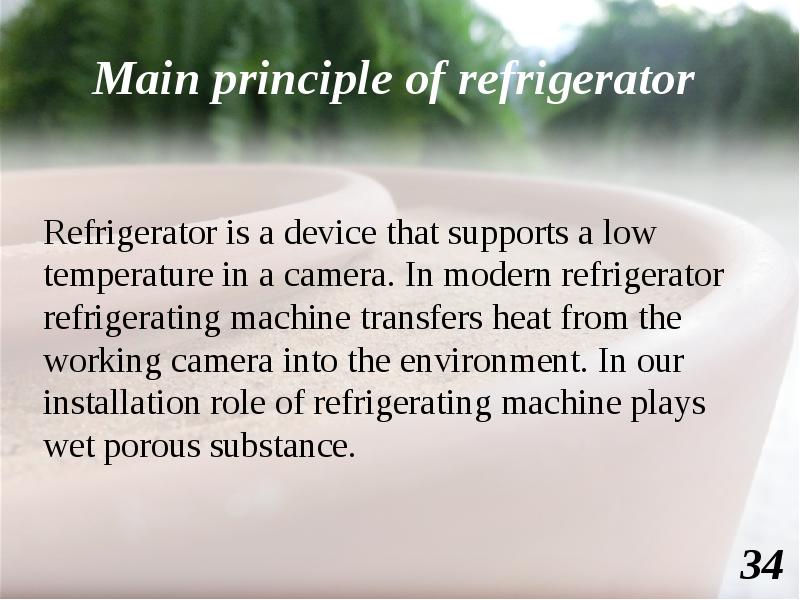 - 34. Main principle of refrigerator Refrigerator is a device that supports