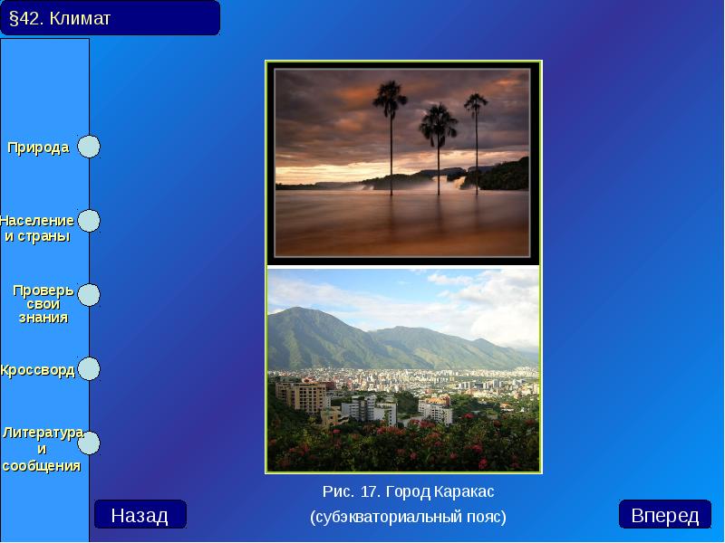 - 17. Южная Америка расположена в Южная Америка расположена в 6 климатических поясах: