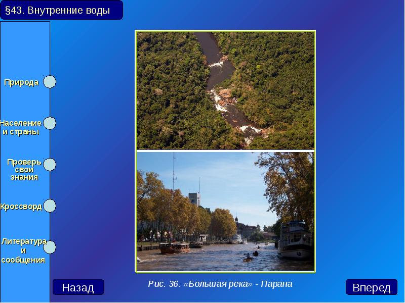 - 37. Бассейны рек Парана и Ориноко расположены преимущественно в субэкваториальных поясах, поэтому