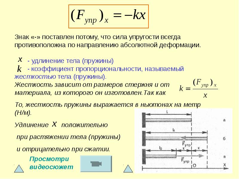 - 10. Закон Гука По закону Гука абсолютная (упругая) деформация пропорциональна приложенной к