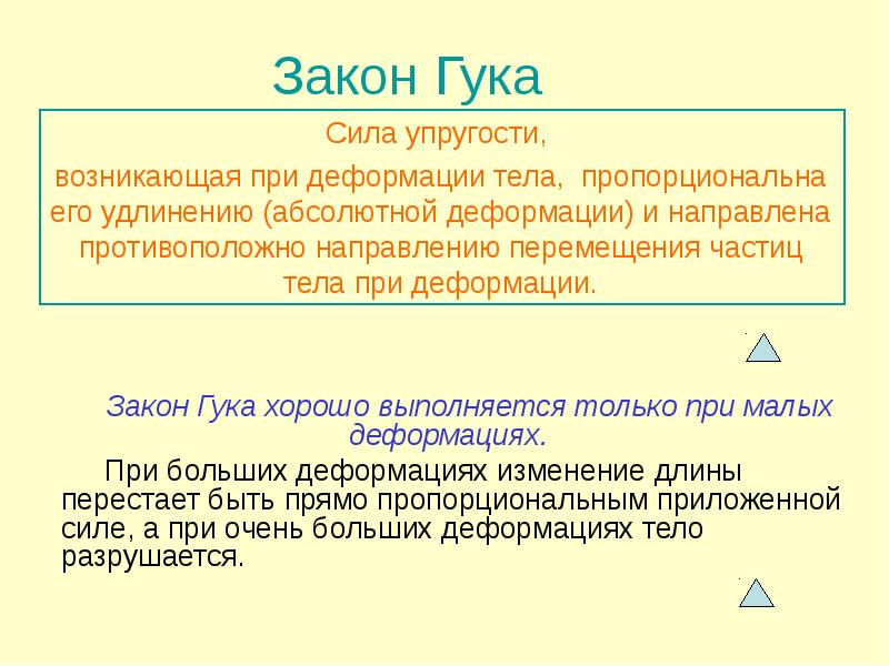 - 12. Закон Гука Закон Гука хорошо выполняется только при малых деформациях.