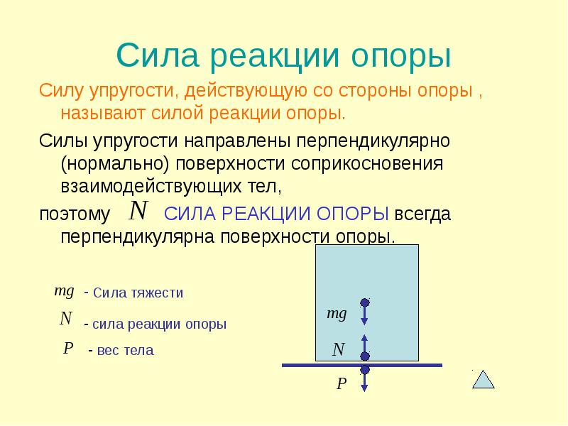 - 13. Сила реакции опоры Силу упругости, действующую со стороны опоры , называют