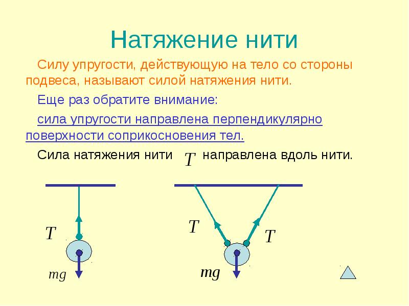 - 14. Натяжение нити Силу упругости, действующую на тело со стороны подвеса, называют