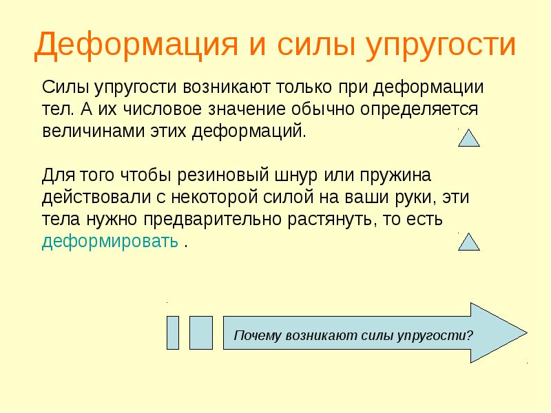 - 2. Деформация Силы тяготения действуют между телами всегда. Не нужно заботиться о