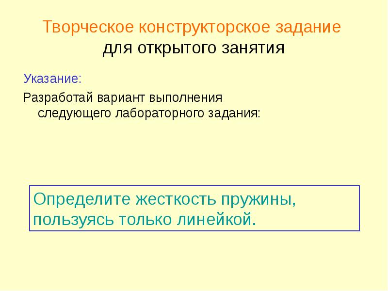 - 9. Творческое конструкторское задание для открытого занятия Указание: Разработай вариант выполнения