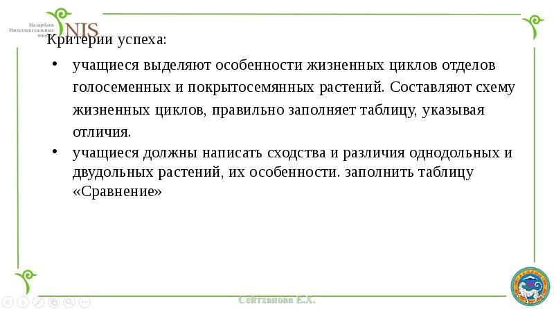 - 7. Критерии успеха: выделяет особенности жизненных циклов отделов голосеменных и покрытосемянных растений.