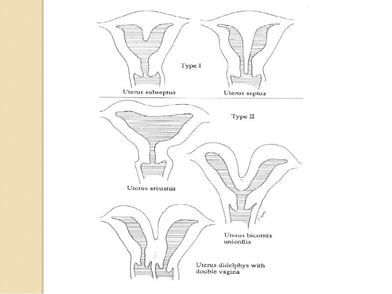 - 8. Wrodzone wady macicy W ogólnej populacji 0,05-2%, u kobiet z kilkoma