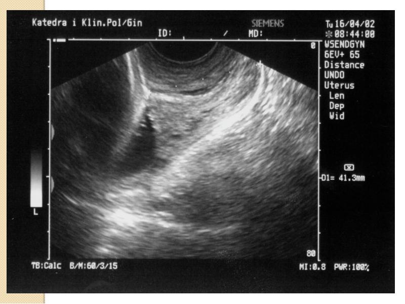 - 10. Mięśniaki macicy Podśluzówkowe mięśniaki – zniekształcenie jamy macicy, zaburzenia funkcji endometrium