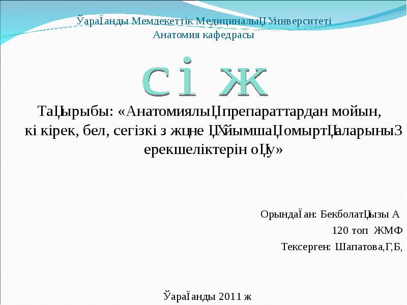 Скачать презентацию на тему Анатомиялық препараттардан мойын, көкірек, бел, сегізкөз және құйымшақ омыртқаларының ерекшеліктерін оқу можно ниже: