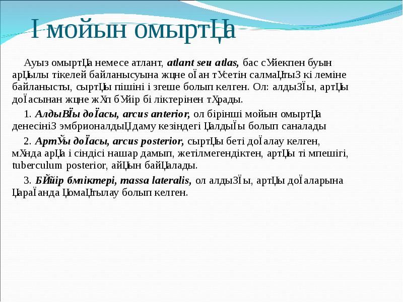 - 12. I мойын омыртқа Ауыз омыртқа немесе атлант, atlant seu atlas, бас