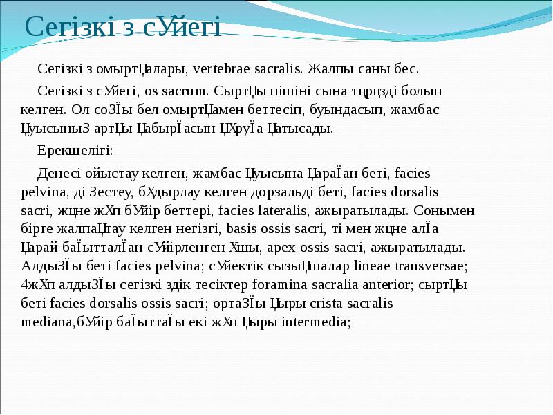 - 26. Сегізкөз сүйегі Сегізкөз омыртқалары, vertebrae sacralis. Жалпы саны бес. Сегізкөз сүйегі,