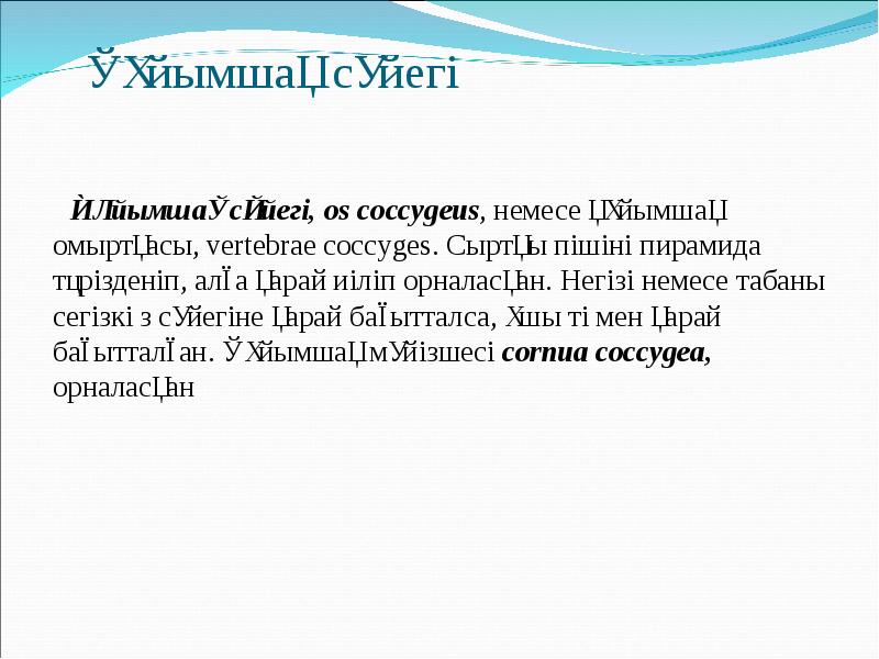 - 29. Құйымшақ сүйегі Құйымшақ сүйегі, os coccygeus, немесе құйымшақ омыртқасы, vertebrae coccyges.