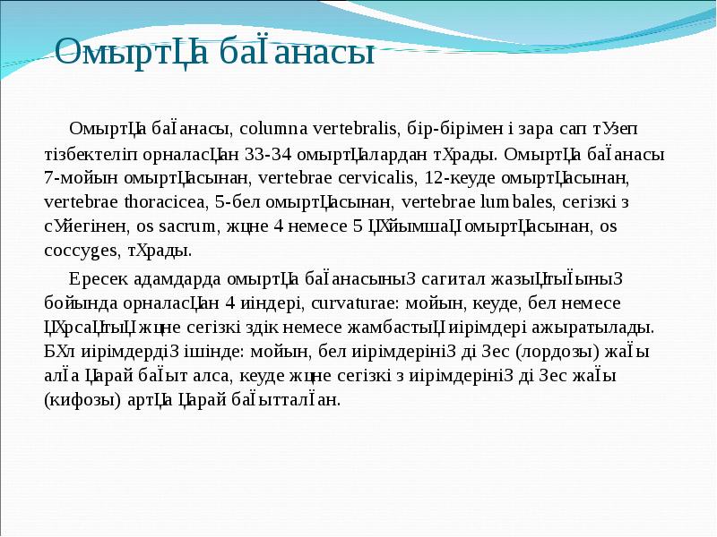 - 3. Кіріспе Тұлға сүйектерінің құрамы: омыртқа бағанасы, columna vertebralis, және