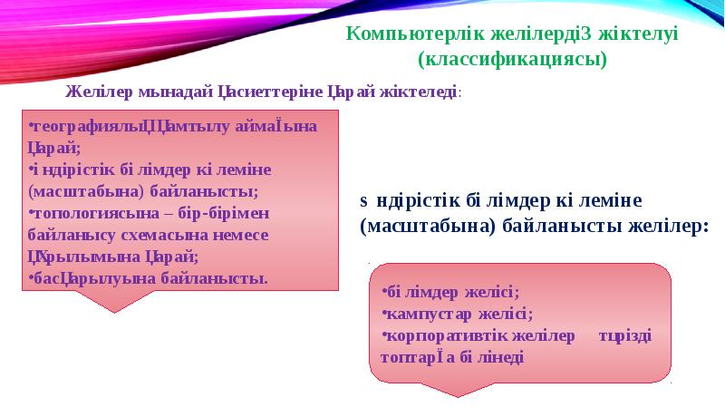 - 9. Географиялық қамтылу аймағына қарай желілер мынадай топтарға бөлінеді: