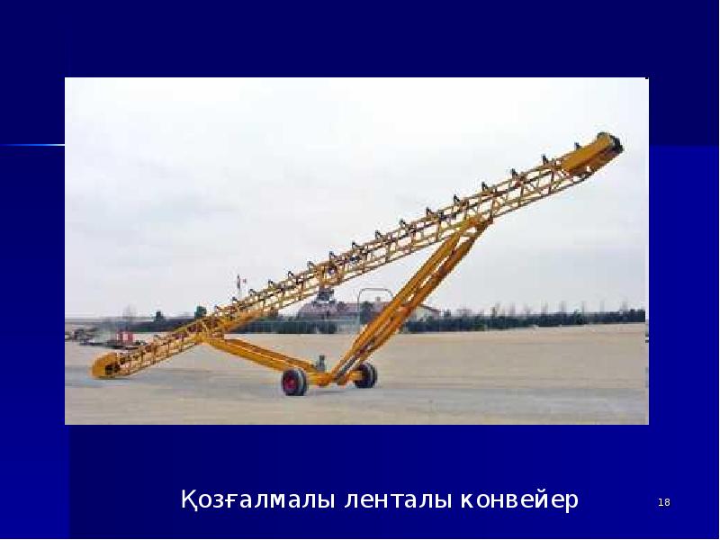 - 20. Белгілі ауданда орналасуына байланысты ленталы конвейерлер стационарлы және қозғалмалы, жылжымалы және