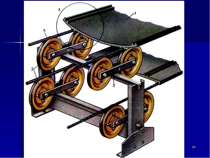 - 25. Тіректі құрылымдар. Тіректі құрылымдар. Шеткі барабандардың аралығындағы лентаның тірегі ретінде роликтітіректер