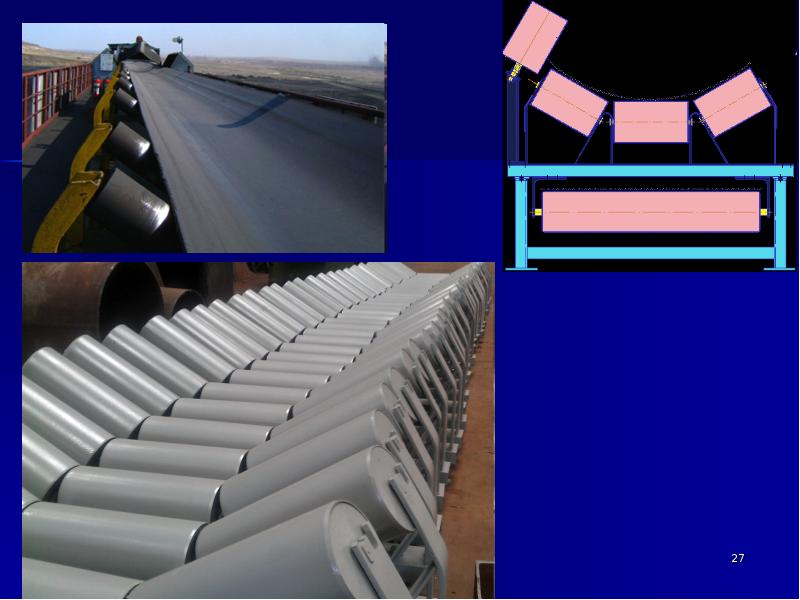 - 26. Ролитітіректерді конвейерде орналасуына байланысты жоғарғы (лентаның жүктасымалдағыш бөлігін тіреуге) және астынғы