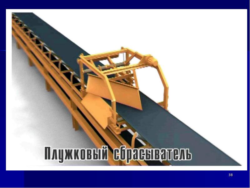 - 37. Конвейрлерден жүктерді түсіру (разгрузка) үшін еркін түсірілісті немесе қосымша лақтырғыштар қолданылады.