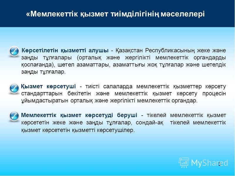 - 2. Мемлекеттік қызмет - азаматтардың мемлекеттік органдар мен оның аппараттарындағы кәсіптік қызметі. Мемлекеттік
