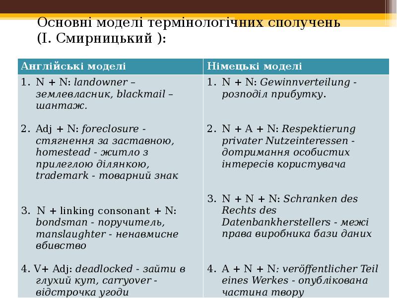 Структурний та семантичний аспекти перекладу англійської та німецької юридичної термінології презентация