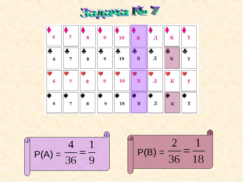 Р(А) – вероятность события А, n – общее число исходов, т – число исходов, благоприятствующих событию А.