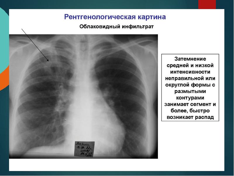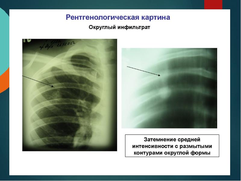 - 13. Округлый инфильтративный туберкулез легких рентгенологическая картина