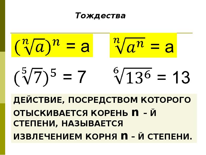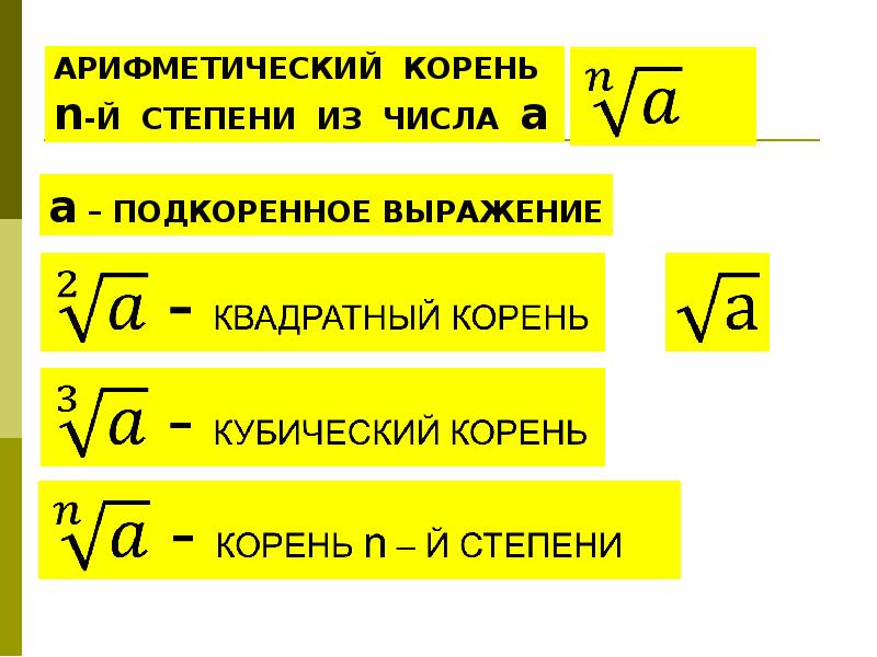 - 10. Арифметический корень натуральной степени Определение Корнем n-ой степени из числа a