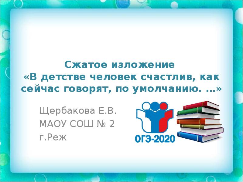 Сжатое изложение «В детстве человек счастлив, как сейчас говорят, по умолчанию презентация