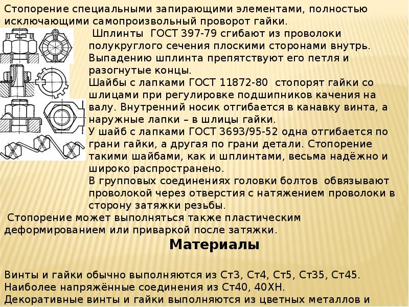 - 17. Стопорение Известны следующие виды стопорения. Стопорение дополнительным трением, за счёт создания
