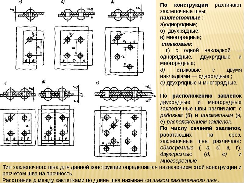 - 5. Виды швов Соединение деталей машины или сооружения, осуществленное группой заклепок, называется