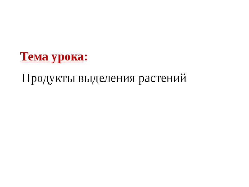 Тема урока : Продукты выделения растений презентация