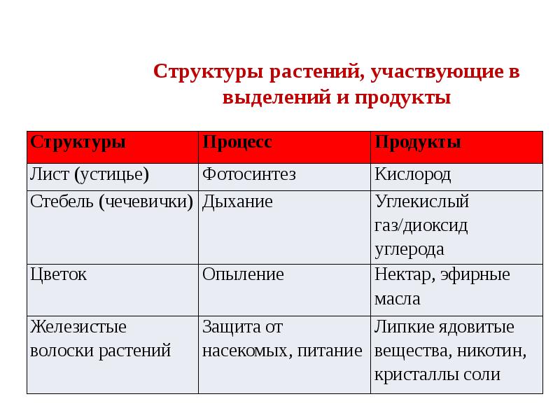 Продукты выделения растений можно ниже: