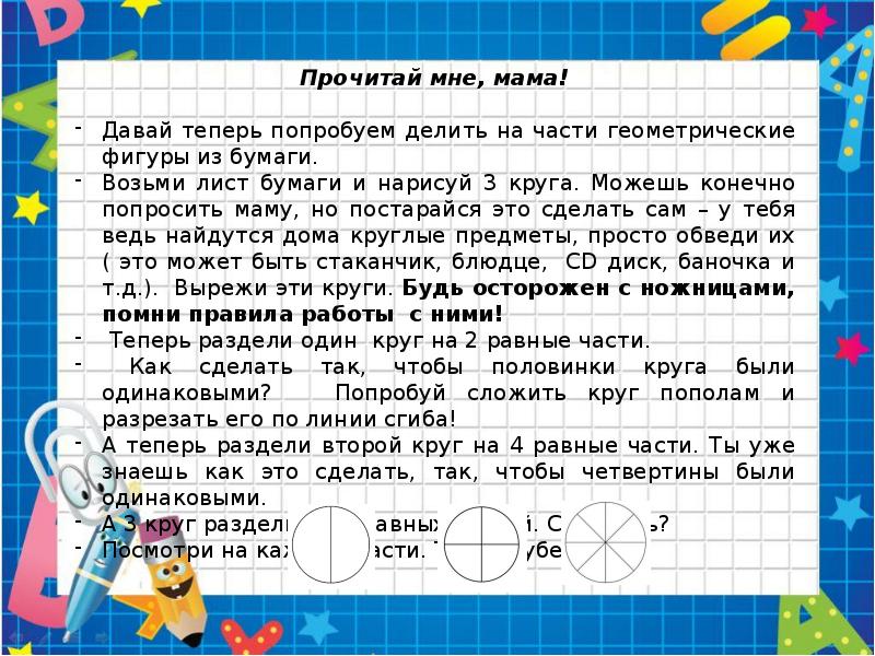 Презентации» Образование» Тема: «Составление фигур из частей и разбиение их на части » МКОУ ДО