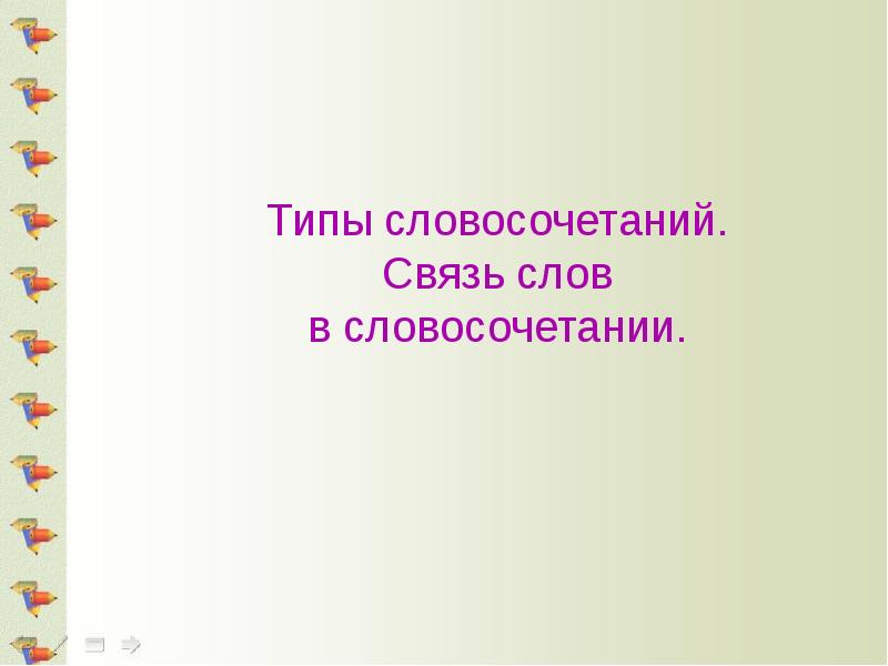 Типы словосочетаний. Связь слов в словосочетании презентация