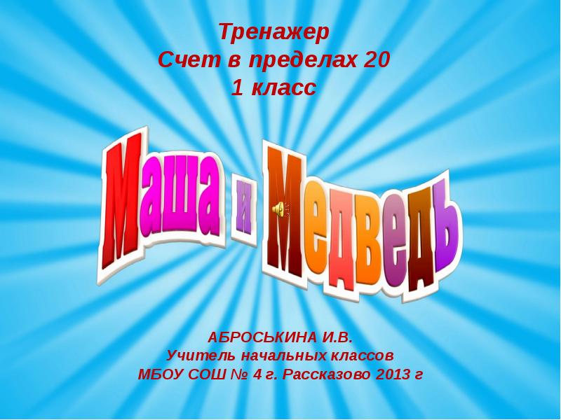 Тренажер Счет в пределах 20 1 класс АБРОСЬКИНА И.В. Учитель начальных презентация