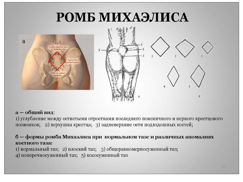 - 15. Тазоизмерение: Distantia spinarum - 25 - 26 см Distantia cristarum -