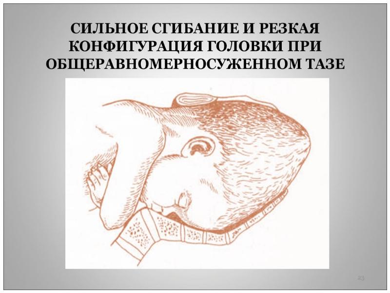 - 25. ТАКТИКА ВЕДЕНИЯ РОДОВ ПРИ УЗКОМ ТАЗЕ Кесарево сечение: Анатомическое сужение таза