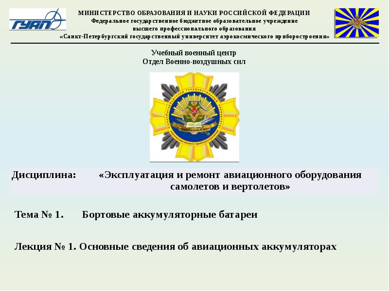 Учебный военный центр Отдел Военно-воздушных сил Дисциплина: «Эксплуатация и презентация