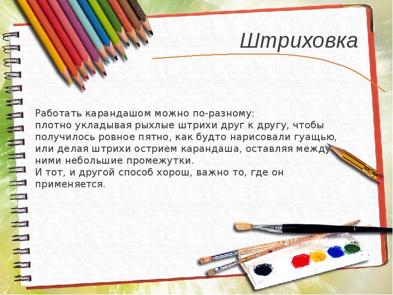 - 11. Переходим к основному этапу Теперь мы научились выполнять штриховку цветными карандашами!