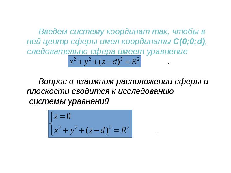 - 4. z=0 х2+у 2+(z-d)2=R2