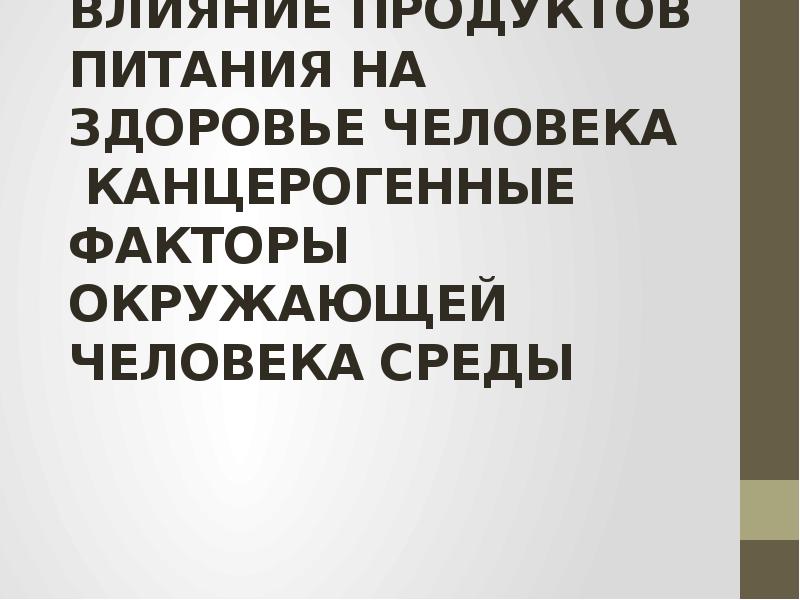ВЛИЯНИЕ ПРОДУКТОВ ПИТАНИЯ НА ЗДОРОВЬЕ ЧЕЛОВЕКА КАНЦЕРОГЕННЫЕ ФАКТОРЫ ОКРУЖАЮЩЕЙ презентация