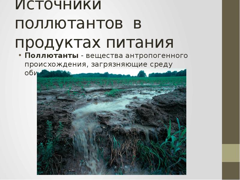 - 3. Источники поллютантов в продуктах питания Поллютанты - вещества антропогенного происхождения,